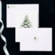 Share the beauty of the season with this elegant Christmas stickers featuring a single snowy pine tree and gold snowflakes