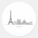 Adesivo Redondo Minimalist Paris Skyline Line Art