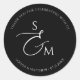 Adesivo Redondo Minimalist Script Monogram Wedding Black