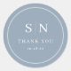 Este elegante e moderno obrigado de casamento que você favorece os adesivos apresentam um simples design de texto azul e branco empoeirado que exude o estilo minimalista. Adicione suas iniciais ou monograma para torná-las completamente suas.