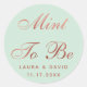 O casamento favorece o adesivo para o tema das cores do casamento da horta e do ouro rosa. O fundo é verde-menta. As palavras "Mint To Be" são escritas em folha de ouro (faux) de rosa, numa escrita caligráfica elegante. Nelas, os nomes e a data são escritos em pequenos bonés, em cor semelhante.