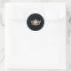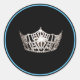 Adesivo redondo mostrado com fundo preto com uma imagem coroa prateada. Tem um salto de cor com uma borda azul do céu. Altere a cor da borda, se desejar. A opção Filtro oferece opções de cores limitadas. Personalizar ou comprar como está.