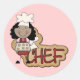 Uma figura de vara africana americana design de chef em t-shirts, canecas, cartões, adesivos, sacos de tota, chaveiros e outros itens que são perfeitos para raparigas que se interessam por cozinhar, ou até fazem um presente bonito para uma mulher adulta cozinheira que adora figuras de vara!