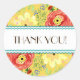 Este é um "Obrigado Sticker" correspondente ao convite de casamento do mesmo nome. COLOR PALETTE: coral, vermelho, amarelo mostarda, laranja e verde limão com um toque de chocolate marrom. COLLECTION: Corresponding Obrigado Notes, Note Cards. Criada da trabalho de arte de cor d'água original pintada manualmente por Audrey Jeanne Roberts, esta design floral imaginativa moderna tem uma combinação de cores moderna. Flores aleunculus, em forma de círculo, com vários elementos florais brancos, bonitos e estilticamente fundidos são jogados sobre a cor de fundo. Alguns se assemelham a rosas, bagas e margaridas selvagens com folhas de estilo férn. Um quadro de estilo de colchete tem bolinhas e uma borda do tipo espiral de caligrafia. Há uma grande variedade de combinações de cores disponíveis com este padrão.