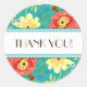 Este é um adesivo de agradecimento para combinar com o convite do casamento do mesmo nome. COLOR PALETTE: turquesa, azul-lacrimejo, coral, vermelho, amarelo, laranja e verde limão com um toque de chocolate marrom. COLLECTION: Corresponding Obrigado Notes, Note Cards. Criada da trabalho de arte de cor d'água original pintada manualmente por Audrey Jeanne Roberts, esta design floral imaginativa moderna tem uma combinação de cores moderna. Flores aleunculus, em forma de círculo, com vários elementos florais brancos, bonitos e estilticamente fundidos são jogados sobre a cor de fundo. Alguns se assemelham a rosas, bagas e margaridas selvagens com folhas de estilo férn. Um quadro de estilo de colchete tem bolinhas e uma borda do tipo espiral de caligrafia. Há uma grande variedade de combinações de cores disponíveis com este padrão.