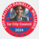 A modelo de campanha de fotos personalizada das eleições locais de 2024 para um adesivo redondo clássico foi projetada para ser uma ferramenta versátil e visualmente impressionante para promoção política. O adesivo apresenta um design concêntrico, com a banda mais externa enfeitada em um vermelho rico que significa energia e ação. Esta banda destina-se a conter o slogan ou a chamar à ação, como "Vote" ou "Apoio", seguido do nome do candidato em caracteres em negrito, branco e maiúsculo para contraste de destaque.