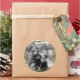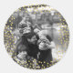 Dourado adesivo redondo de confetti com sua foto personalizada. Basta adicionar sua própria foto e ajustar o texto. Feliz Natal e Felizes Férias! Fotografia © Storytree Studios, Stanford, CA