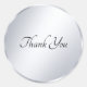 Modelo de texto de agradecimento de letra manuscrita moderna em adesivo redondo clássico prateado metálico.