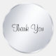 Modelo de texto de agradecimento Manuscrito Moderno Adesivo redondo clássico prateado metálico elegante.