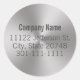 Marca seus produtos com este adesivo comercial personalizado. Ele contém texto que você pode alterar para a mensagem desejada, como nome de uma empresa, endereço e número de telefone. O fundo é uma renderização de artista para parecer metal escovado. Mas o adesivo não é um produto de folha.
