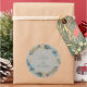 Tenha uma Feliz de Natal centrado nesta bonito coroa tropical de Natal. Dourados e tons de azul empoeirado são as cores proeminentes, colocadas sobre uma sutil cinza de cogumelo. Que selo bonito para as caixas de presentes e pacotes, com um toque exótico na ilha.