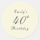 Adesivo Redondo Modern Elegant Cream 40th Birthday Party