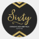Este adesivo cônico redondo apresenta um guião geométrico moderno e a palavra "Sessenta" em dourado falso contra fundo preto. É excelente para uma celebração de 60 anos. Confira os convites e itens correspondentes aqui http://www.zazzle.com/collections/modern_faux_gold_chevron_celebration_collection-119531050277382712?rf=238364477188679314 Personalize-o com seus detalhes substituindo o texto do marcador de posição. Para obter mais opções, clique no botão "Personalizar". *Observe que a Marca d'água do Zazzle que aparece na visualização de zoom NÃO aparecerá no produto impresso final. © Rosewood e Citrus
