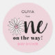 Design moderno, cor-de-rosa, chá de fraldas com adesivos de chá de fraldas 'Um a caminho'. Personalize com seu próprio texto. Intervalo de produtos correspondente disponível. Arte original de artistas e suas próprias ilustrações. Use o botão de mensagem me abaixo para obter ajuda sobre outras solicitações especiais e personalizações. © Zoe Chapman Design