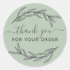 Arte de linha de folha de louros moderna "obrigado você pelo seu oder" com adesivo redondo clássico de tipo de letra