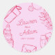 Adesivo Redondo Modern Pink & Red Wedding sketch Favor