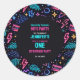 Modern retro neon 80s 1st birthday party sticker with bright colorful design. Perfect for party favors, gift bags, and neon themed first birthday decor. 🎉