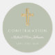 Modern Sage Green Religious Cross Boy Confirmation Classic Round Sticker.