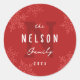 Adesivo Redondo Modern Script Snowflakes Family Name Holiday Favor