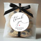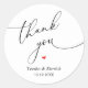 Modern Wedding minimalist Thank You Gifts Classic favor Round Sticker, in romantic script, cute little red heart, with bride and groom signature and wedding date, black and white theme.