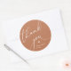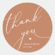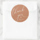 Modern Wedding minimalist Thank You Gifts Classic favor Round Sticker, in romantic script, cute little heart, with bride and groom signature and wedding date, copper brown theme.
