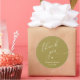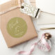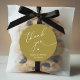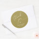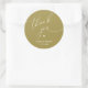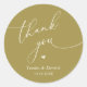 Modern Wedding minimalist Thank You Gifts Classic favor Round Sticker, in romantic script, cute little heart, with bride and groom signature and wedding date, yellow gold theme.