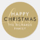 Rótulo redondo moderno e elegante com amor dourado para você personalizar com sua mensagem de feriado e nome da família. Você pode personalizar a cor do fundo para combinar com o tema do seu feriado. Criado por Thisisnotme©