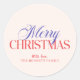 Um adesivo de Natal redondo moderno com tipografia elegante em tons vermelhos e azuis, perfeito para adicionar um toque de feriado refinado a presentes e envelopes.