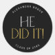 Este moderno ouro negro fete que ele fez é perfeito para uma simples festa de formando para ele. A design apresenta uma elegante tipografia de boho com um toque de estilo sofisticado em preto escuro clássico e ouro amarelo. Personalize seu adesivo de favor com o nome do formando e ano de aula.