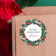 Adesivo Redondo Moderno inverno Floral Verde Feliz Natal
