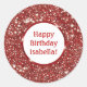 Adesivo Redondo Moderno Red Faux Glitter Parece Feliz Aniversário