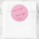 Esta etiqueta de Natal redonda e cor-de-rosa com escrita à mão em vermelho negrito é uma maneira festiva e elegante de adicionar um toque final alegre aos presentes de Natal, lembrancinhas de festa, envelopes ou embalagens da época. O design moderno apresenta a frase divertida "merry merry" em uma escrita vermelha fluida contra um fundo rosa vibrante, criando um visual moderno e alegre que se destaca durante a temporada de Natal. Seu layout limpo com texto personalizável na parte inferior permite que você inclua o nome da sua família, uma mensagem de Natal ou uma curta mensagem, tornando cada etiqueta exclusivamente pessoal. Perfeita para selar cartões de Natal, decorar presentes de Natal ou adicionar charme a guloseimas caseiras, este design versátil combina uma paleta de cores contemporânea com uma tipografia simples, porém atraente. Seja usado para celebrações pessoais ou para branding de Natal profissional, esta etiqueta elegante e festiva captura o espírito alegre da época de uma maneira divertida e moderna, sendo prática e elegante.