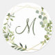 Moldura Geométrica de Eucalipto Moderna MONOGRAMA Adesivo Redondo Clássico