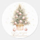 Adesivo Redondo Molho de Água Rosa Elegante Árvore de Natal Feliz