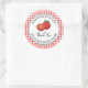 Adesivo Redondo Clássico Molho de Tomate Caseiro Rústico Vermelho Xadrez.