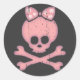 O crânio cor-de-rosa de uma garota bonita e o emblema dos piratas cruzados com arco de ponto polka e meio angustiante. Camisas, capuzes, cartas, presentes.