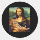 Adesivo Redondo Mona Lisa Segurando Gatinho de Pintura de Retratos