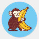Imagem engraçada de um macaco abraçando uma banana grande.