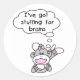Um design de macaco humorístico com texto preto diz: "Eu tenho recheio para cérebros!".