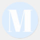 Personalizar o número inicial do monograma de adesivo redondo clássico branco claro azul claro