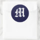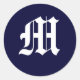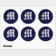 Adesivo Redondo Monograma azul e branco marinho "M"