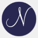 Adesivo Redondo Monograma Azul e Branco marinho "N" Inicial