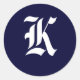 Monograma marinho Azul e Branco Monograma Selos/Adesivos Iniciais. "K" Antiga letra inglesa. VIRGINIA5050* - presentes criativos e incomuns em todas as ocasiões em www.zazzle.com/virginia5050* PRESENTES INTERNACIONAIS em zazzle.com/InternationalGifts, Florida Gift Store em zazzle.com/FloridaGiftStore*, RETIREMENT GIFT STORE em zazzle.com/RetirementGiftStore, I AMOR GIFT STORE em zazzle.com/ILoveGiftStore, e BIRTHDAY GIFT STORE em zazzle.com/BirthdayGiftStore*