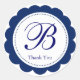 Etiqueta escamoteada em círculo azul Elegante, com solteiro inicial e "Obrigado" no centro. Perfeito para autocolantes, selos de envelopes, papelaria de casamento, chás de fraldas, chás de panela e favoritos para festas personalizados. Um design versátil e personalizável para qualquer ocasião.