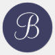 Adesivo Redondo Monograma B em branco sobre azul Marinho,