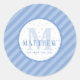 Um monograma personalizado com um gravador redondo. Inicial, nome e data personalizados rodeados pelas estrelas e faixas diagonais. Chá de fraldas perfeito ou o primeiro favor de aniversário ou ideia de empacotamento de presentes. Combinação tradicional de cor de khaki, branco e branco pastel. Adicione o nome e o monograma com a ferramenta de edição Zazzle fácil de usar! Visite o compro para ver toda a coleção. Há bandeiras, guarnições, caixas de favor, garrafas de água, fatos-macaco e muito mais disponíveis. E é claro, também estão no compro os vigilantes e as máscaras!