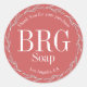 Delicar quadro redondo botânico com personalizável Obrigado por seu texto de compra, iniciais de monograma, tipo de produto, neste caso sabão, e local onde os negócios começaram. Ideal para embalagens pós-compra. Inscrição branca em fundo de rosa de castanho ou vermelho indiano.