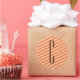 Monograma castanho-escuro, bonito e personalizável, sobre fundo de tiras de diagnóstico retrorlaranja. design com grande, personalizado, monograma personalizado vertical e legal. Personalize o monograma com o seu primeiro ou sobrenome inicial! presente de tendências personalizadas de excelente para crianças, adolescentes, adolescentes ou adultos; menino ou menina!