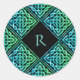 Um conjunto de autocolantes redondos de monograma preto com um nó celta azul-esverdeado com design repetido. Faça-o pessoalmente seu com suas próprias iniciais!
