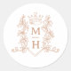 Adesivo Redondo Monograma com crista de coroa rosa dourada